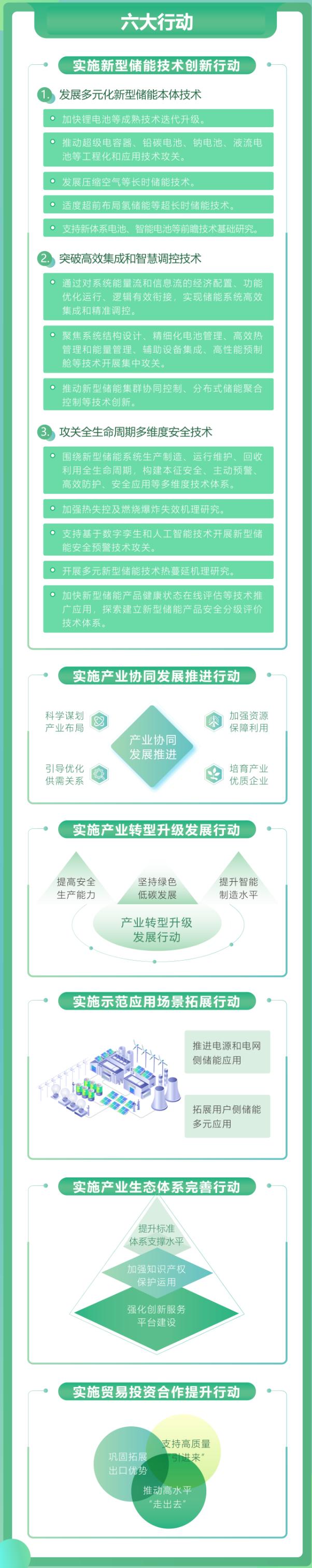 記者注意到,《方案》共提出實(shí)施新型儲能技術(shù)創(chuàng)新行動、實(shí)施產(chǎn)業(yè)協(xié)同發(fā)展推進(jìn)行動、實(shí)施產(chǎn)業(yè)轉(zhuǎn)型升級發(fā)展行動、實(shí)施示范應(yīng)用場景拓展行動、實(shí)施產(chǎn)業(yè)生態(tài)體系完善行動、實(shí)施貿(mào)易投資合作提升行動等六大行動。