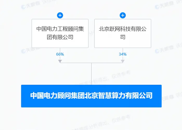 股權(quán)穿透顯示,該公司由中國(guó)能建旗下中國(guó)電力工程顧問(wèn)集團(tuán)有限公司和北京躍網(wǎng)科技有限公司共同持股。