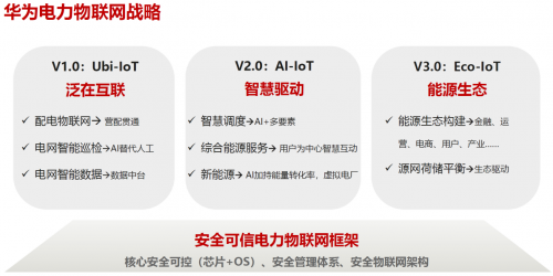 華為中國(guó)企業(yè)解決方案CTO董偉嗣表示:“電力物聯(lián)網(wǎng)是電網(wǎng)數(shù)字化轉(zhuǎn)型的引擎,其業(yè)務(wù)實(shí)質(zhì)是實(shí)現(xiàn)電網(wǎng)數(shù)字化、運(yùn)營(yíng)數(shù)字化和以客戶(hù)為中心的綜合能源服務(wù),并推動(dòng)能源生態(tài)的轉(zhuǎn)變、優(yōu)化源網(wǎng)荷儲(chǔ)平衡。華為電力物聯(lián)網(wǎng)戰(zhàn)略目標(biāo)是:打造安全可信電力物聯(lián)網(wǎng)框架,并結(jié)合電力業(yè)務(wù)場(chǎng)景,以泛在互聯(lián)Ubi-IoT、智慧驅(qū)動(dòng)AI-IoT和能源生態(tài)Eco-IoT三個(gè)階段進(jìn)行發(fā)展演進(jìn)。