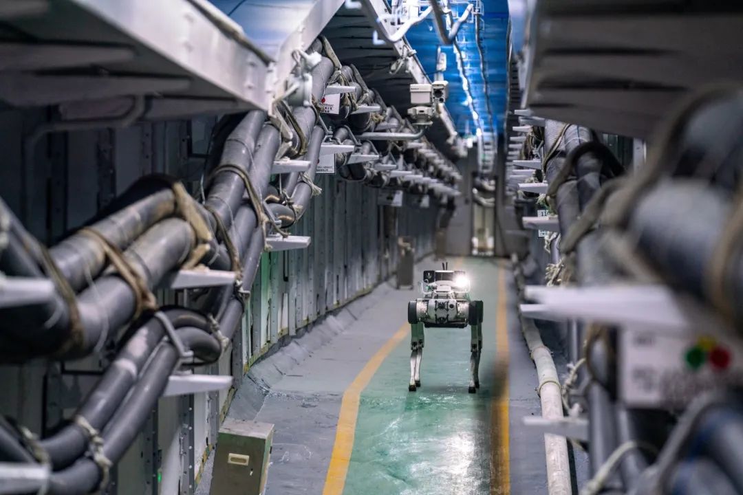 ▲在橫琴島內(nèi)的變電站、輸電管廊,通過電鴻物聯(lián)操作系統(tǒng)實現(xiàn)了機器狗設(shè)備自主協(xié)同智能巡視。(周卓英 攝)
