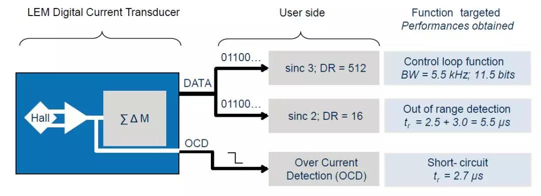 LEM公司針對數(shù)字化的市場需求,在經(jīng)典開環(huán)傳感器的基礎(chǔ)上基于∑-△ ADC的技術(shù),開發(fā)出了一系列的先進數(shù)字輸出傳感器。其基本原理如圖1所示。