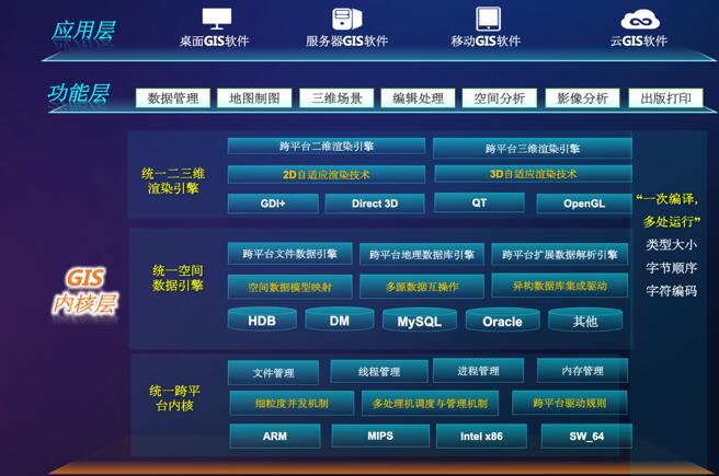 在“雙輪驅(qū)動(dòng)”戰(zhàn)略思想下,MapGIS 10.5 Pro產(chǎn)品應(yīng)運(yùn)而生,基于統(tǒng)一的跨平臺(tái)內(nèi)核,實(shí)現(xiàn)了全國(guó)產(chǎn)化體系架構(gòu)和X86系統(tǒng)架構(gòu)的“雙輪驅(qū)動(dòng)”,構(gòu)建全國(guó)產(chǎn)化GIS平臺(tái)和全空間智能GIS平臺(tái)兩大自主可控產(chǎn)品,延續(xù)MapGIS 10.5云端融合的產(chǎn)品體系,強(qiáng)化九州中國(guó)芯,提升全空間智能GIS技術(shù),并推出組件式、搭建式、配置式三大敏捷開發(fā)方式,為用戶提供持續(xù)、穩(wěn)健、高效的技術(shù)支撐,為行業(yè)應(yīng)用賦能。