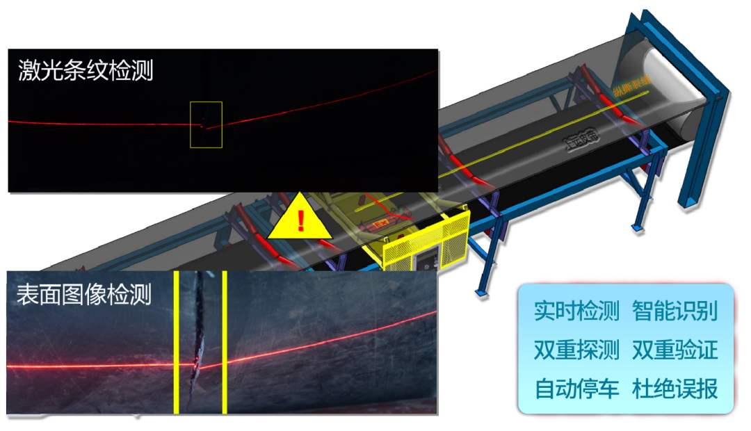 斗輪機(jī)操作人員識(shí)別驗(yàn)證采用深度學(xué)習(xí)算法,支持離線比對(duì),人臉比對(duì)時(shí)間<0.2s/人,人臉比對(duì)準(zhǔn)確率≥99%;輸送帶縱向撕裂檢測(cè)裝置使用激光束掃描皮帶表面,相機(jī)采集圖像信息,獨(dú)立鑒定,相互驗(yàn)證,當(dāng)兩種手段100%確認(rèn)了縱向撕裂發(fā)生,系統(tǒng)才進(jìn)行報(bào)警。