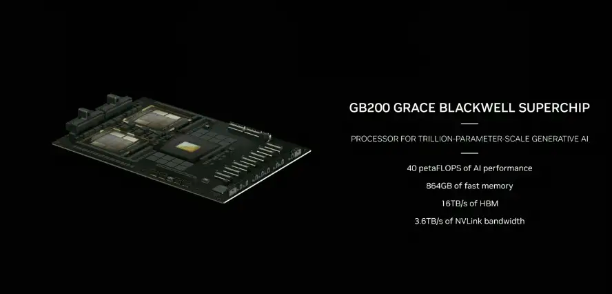 發(fā)布會(huì)直播截圖這些超級(jí)AI芯片相比英偉達(dá)自身產(chǎn)品也有巨大提升。據(jù)介紹,B200擁有2080億個(gè)晶體管,而H100/H200有800億個(gè)晶體管,采用臺(tái)積電4NP工藝制程,可以支持多達(dá)10萬(wàn)億個(gè)參數(shù)的AI大模型。GB200將兩個(gè)B200 Blackwell GPU與一個(gè)基于Arm的Grace CPU進(jìn)行配對(duì)。