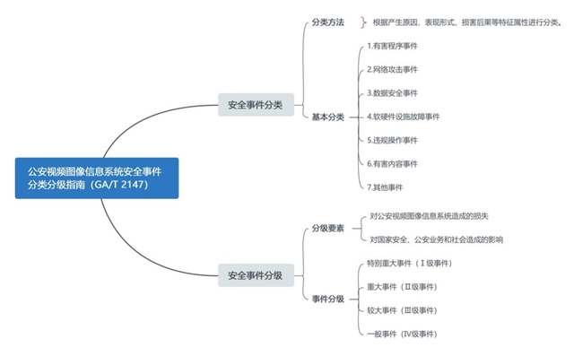 標(biāo)準(zhǔn)主要內(nèi)容:該標(biāo)準(zhǔn)內(nèi)容主要包括安全事件分類、安全事件分級(jí)等兩大類。同時(shí),標(biāo)準(zhǔn)還闡述了公安視頻圖像信息系統(tǒng)安全事件分類、基本分類和安全事件分級(jí)要素、事件分級(jí)等內(nèi)容。詳情如圖: