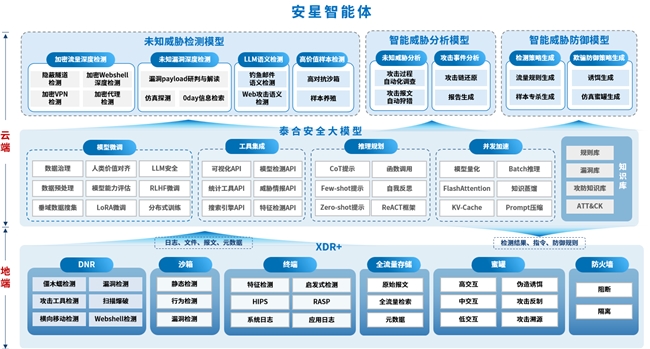 基于對網(wǎng)絡安全場景的深刻理解和豐富的安全數(shù)據(jù)積淀,啟明星辰于2024年5月與中國移動共同發(fā)布了九天•泰合安全大模型,并圍繞威脅檢測、安全運營等場景持續(xù)深耕,打造了多款“AI+安全”智能助手產(chǎn)品。此次發(fā)布的安星智能體,將作為九天·泰合安全大模型在L2層應用場景的核心,全面提升安全檢測、分析、響應和自動化處置全流程的智能化安全運營水平。