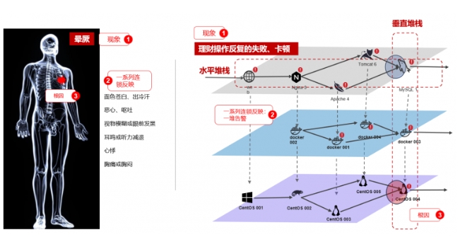 圖:因果AI的類比圖(人體系統(tǒng)的暈厥 vs IT系統(tǒng)的業(yè)務(wù)異常)
