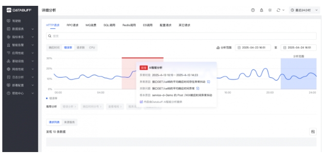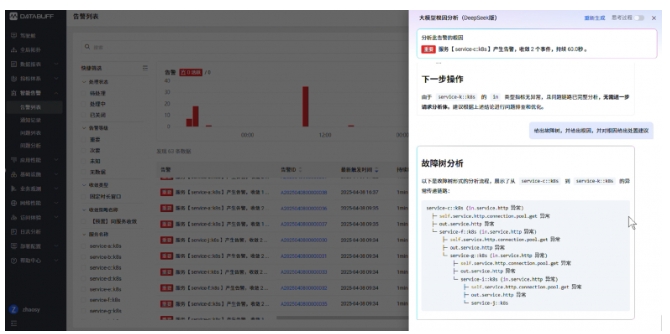 DataBuff 新核心業(yè)務(wù)觀測(cè)與故障定位解決方案主要包括三個(gè)方面的功能:基于業(yè)務(wù)觀測(cè)的用戶旅程分析、基于因果AI的故障定位能力、基于生成式AI的運(yùn)維自動(dòng)化能力,以下展開詳細(xì)說(shuō)明: