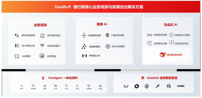 銀行新一代核心的復(fù)雜性帶來(lái)了全新的運(yùn)行穩(wěn)定性挑戰(zhàn),傳統(tǒng)監(jiān)控技術(shù)面臨嚴(yán)重瓶頸。DataBuff一體化觀測(cè)平臺(tái),通過(guò)創(chuàng)新的方式將“業(yè)務(wù)觀測(cè)”、“因果AI”、“生成式AI” 三大領(lǐng)先技術(shù)深度融合,幫助銀行全面解決新一代核心系統(tǒng)的運(yùn)行穩(wěn)定性問(wèn)題。該平臺(tái)能夠深度感知新一代核心的業(yè)務(wù)運(yùn)行狀態(tài),全面梳理消費(fèi)者的業(yè)務(wù)旅程,構(gòu)建“以業(yè)務(wù)為中心”的新一代監(jiān)控管理體系,提供端到端的交易級(jí)鏈路追蹤能力,快速發(fā)現(xiàn)問(wèn)題、定位問(wèn)題、處理問(wèn)題,實(shí)現(xiàn)故障定位的一鍵直達(dá)。