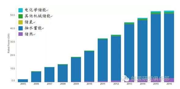圖3?2005~2016年全球各儲能技術(shù)裝機(jī)情況