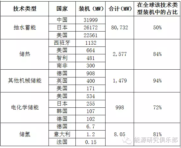 表2 全球各類型儲能技術(shù)主要裝機(jī)國家