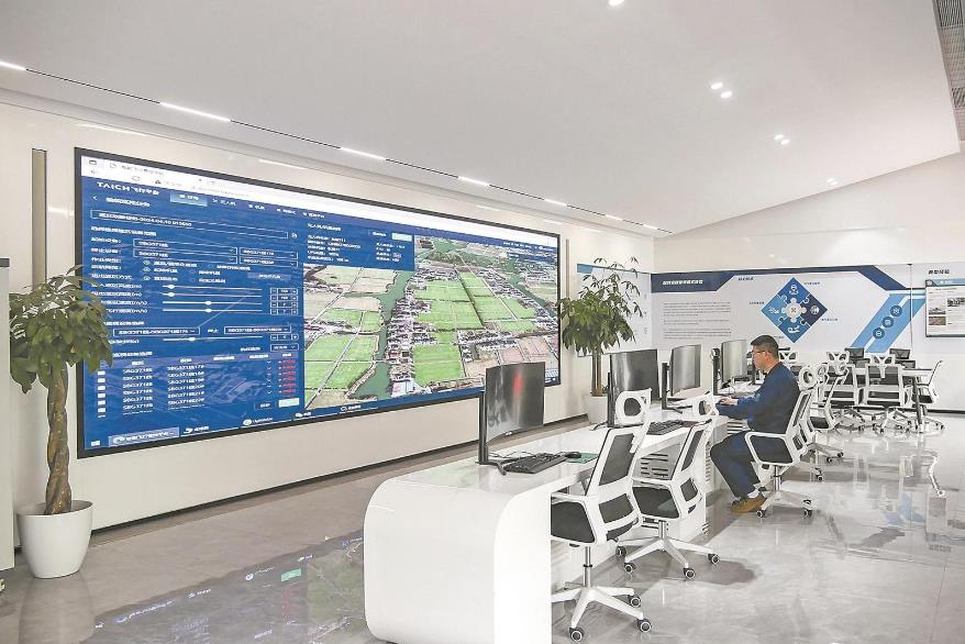 瓶窯供電所員工在無人機(jī)巡檢中心查看無人機(jī)回傳的巡檢結(jié)果。張德峰 攝