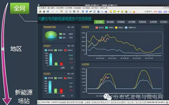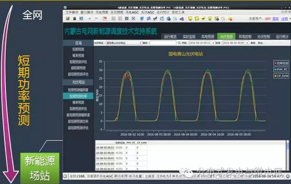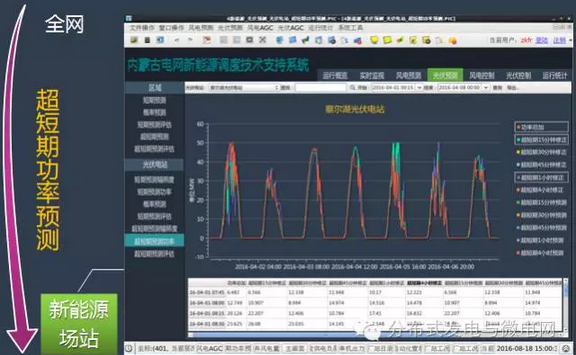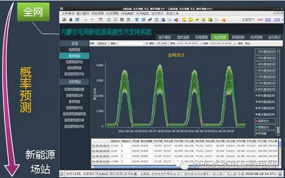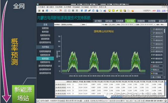 2014年12月,光伏發(fā)電信息采集和實(shí)時(shí)監(jiān)視;2015年11月,光伏發(fā)電短期和超短期預(yù)測(cè);2016年1月,光伏發(fā)電概率預(yù)測(cè);2016年7月,風(fēng)光火蓄協(xié)調(diào)實(shí)時(shí)閉環(huán)控制,新能源調(diào)度運(yùn)行指標(biāo)統(tǒng)計(jì)系統(tǒng);全面實(shí)現(xiàn)可觀、可控、可預(yù)測(cè)。