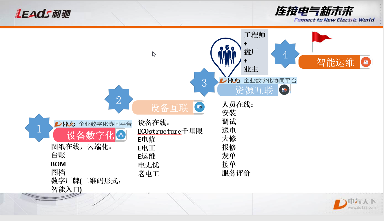 采訪中,令永卓感慨道:“我已經(jīng)服務(wù)于電氣行業(yè)25年,很榮幸作為參與者一路見證電氣行業(yè)由傳統(tǒng)走向今天的智能化,這些離不開智能制造近年來(lái)的大力推動(dòng)。當(dāng)前企業(yè)紛紛將其納入發(fā)展的戰(zhàn)略目標(biāo),利馳也不例外,不斷創(chuàng)新研發(fā),先后推出了工業(yè)電氣一站式工作平臺(tái)——電氣天下和D-Hub企業(yè)數(shù)字化協(xié)同平臺(tái),幫助電力裝備制造行業(yè)智造升級(jí)。” 據(jù)了解,電氣天下針對(duì)個(gè)人用戶開放服務(wù),提供海量免費(fèi)工業(yè)設(shè)計(jì)軟件、選型數(shù)據(jù)及服務(wù)、專業(yè)文獻(xiàn)等資源,幫助電氣行業(yè)上下游實(shí)現(xiàn)電氣的選型、圖紙、樣本資料、軟件下載,涵蓋電氣指數(shù)、電氣智庫(kù)知識(shí)分享一體化與一站式的服務(wù)。而把眾多工業(yè)軟件集成到一個(gè)云端數(shù)據(jù)庫(kù),一個(gè)統(tǒng)一的數(shù)字化協(xié)同平臺(tái)——D-Hub,則成功地打通了選型、報(bào)價(jià)、設(shè)計(jì)、工藝、制造、供應(yīng)鏈的數(shù)據(jù),使得企業(yè)的數(shù)據(jù)資產(chǎn)可以跨部門、跨企業(yè)的共享和復(fù)用,并讓數(shù)據(jù)在流動(dòng)中不斷增值。目前D-hub已覆蓋多種模板,建立了以3D元件為核心的覆蓋配電、自動(dòng)化行業(yè)1000多個(gè)品牌、3萬(wàn)多個(gè)系列、2.5億多個(gè)電氣及自動(dòng)化元件數(shù)據(jù)庫(kù)。令永卓直言:“D-Hub的功能遠(yuǎn)不止此,利馳已經(jīng)在D-Hub上開始發(fā)力,發(fā)展數(shù)據(jù)可視化技術(shù),進(jìn)而實(shí)現(xiàn)設(shè)備互聯(lián)、產(chǎn)線互聯(lián),以及智能調(diào)度,助力電力裝備業(yè)的設(shè)計(jì)、制造的全流程數(shù)字化。并且,未來(lái)D-Hub將帶來(lái)更多可能性,實(shí)現(xiàn)設(shè)備數(shù)字化,進(jìn)而將設(shè)備資產(chǎn)與維修工程師和設(shè)備生產(chǎn)商連接起來(lái),實(shí)現(xiàn)資源互聯(lián)和設(shè)備在線,最終實(shí)現(xiàn)智能運(yùn)維,更好地服務(wù)電力電氣行業(yè)。”
