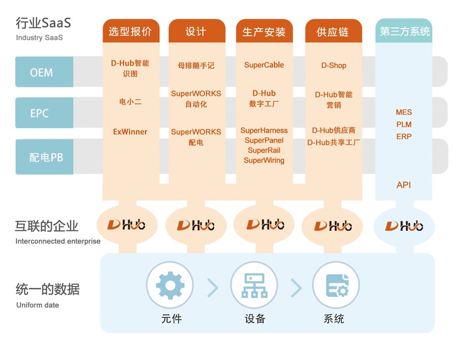 令永卓深諳數(shù)據(jù)的價(jià)值。他帶著創(chuàng)業(yè)家的韌勁,敏銳洞察電力裝備制造行業(yè)的發(fā)展趨勢(shì),本著從數(shù)據(jù)中學(xué)習(xí)、改變電力電氣行業(yè)的初衷,從數(shù)據(jù)中提取價(jià)值服務(wù)用戶的理念,提出用數(shù)據(jù)賦能行業(yè),致力于打通數(shù)據(jù)流。談起如今專注挖掘數(shù)據(jù)的價(jià)值,令永卓表示,這一切源于他求學(xué)時(shí)代的經(jīng)歷。大學(xué)期間,在清華工程力學(xué)系求學(xué)的令永卓建立了面向問題建立數(shù)學(xué)模型,把復(fù)雜的非線性問題抽象為簡(jiǎn)單的線性問題進(jìn)行求解的思維方式。在后來(lái)的工作中,他發(fā)現(xiàn)設(shè)備的設(shè)計(jì)、生產(chǎn)制造以及運(yùn)維之間并非真正有效連接,存在嚴(yán)重的數(shù)據(jù)偏差甚至脫節(jié)的現(xiàn)象,為達(dá)到設(shè)計(jì)、制造以及供應(yīng)鏈的協(xié)同,他提出在電力裝備制造行業(yè)形成貫穿橫向、縱向、端到端的數(shù)據(jù)流通的舉措。之后,他將創(chuàng)想落地,從電氣軟件的數(shù)據(jù)建模開始,制定標(biāo)準(zhǔn),進(jìn)行3D仿真,通過機(jī)器智能設(shè)計(jì)、智能識(shí)圖、智能報(bào)價(jià),進(jìn)而幫助產(chǎn)品實(shí)現(xiàn)協(xié)同制造。令永卓透露:“當(dāng)前基于D-Hub制造的縱向數(shù)據(jù)流與D-Hub供應(yīng)鏈的橫向數(shù)據(jù)流已經(jīng)被成功打通,下一步我們將重點(diǎn)打通集產(chǎn)品研發(fā)、系統(tǒng)設(shè)計(jì)、安裝施工、運(yùn)營(yíng)維護(hù)的D-Hub運(yùn)維的端到端數(shù)據(jù)流。”