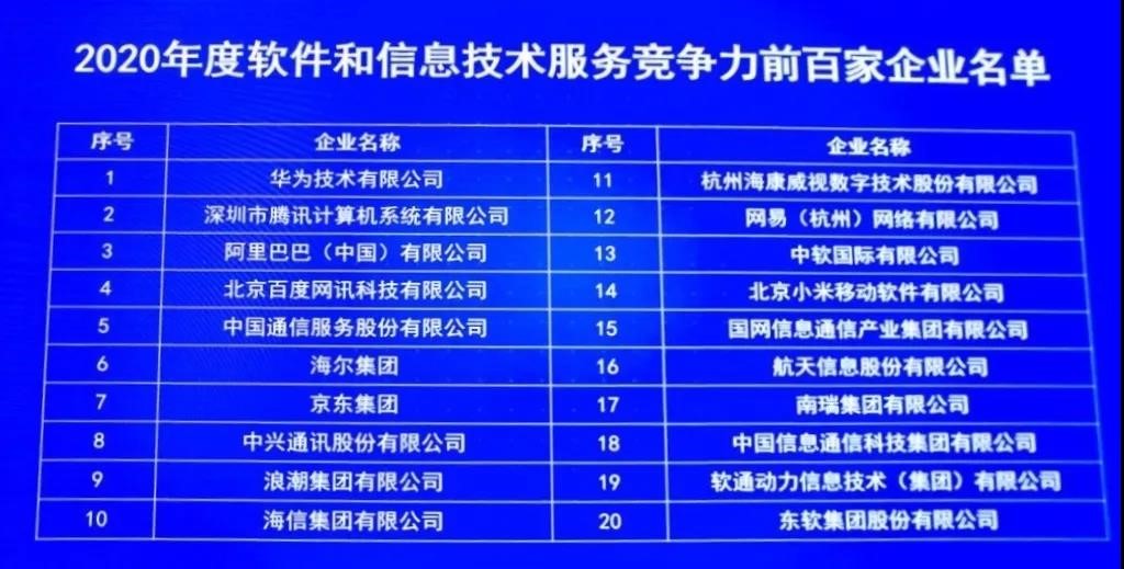 2020年度軟件和信息技術(shù)服務(wù)企業(yè)競爭力百強榜單揭曉,國網(wǎng)信通產(chǎn)業(yè)集團榮登第十五位
