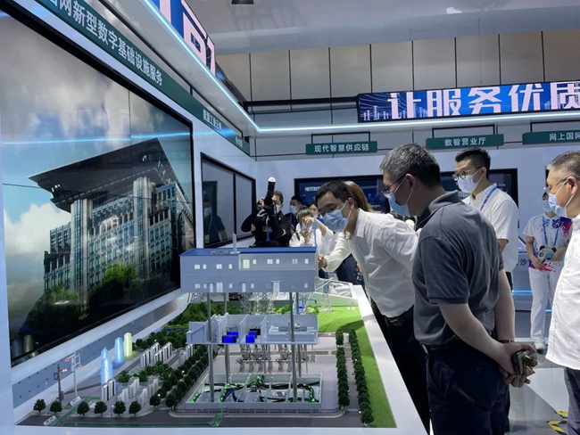 國網(wǎng)信通產(chǎn)業(yè)集團工作人員介紹國網(wǎng)新型數(shù)字基礎(chǔ)設(shè)施服務(wù)。