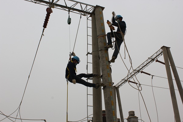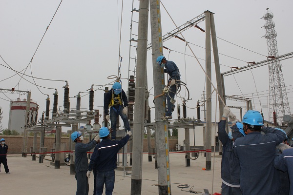 中國電力網訊 4月17日,新疆生產建設兵團第一師電力有限責任公司輸變電工區(qū)在實訓基地開展高空應急救援演練,旨在完善高空救援應急預案,檢驗技術工人的應急救援能力。