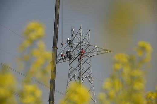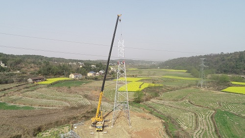 中國電力網(wǎng)訊(通訊員鄒小民、郭暉、朱景明)3月15日,在湖北宜都市枝城鎮(zhèn)何陽店村宜昌-荊州江南220千伏電網(wǎng)優(yōu)化工程53號桿塔施工場,國網(wǎng)湖北送變電公司施工人員吊裝鐵塔,加快推進宜昌-荊州江南220千伏電網(wǎng)優(yōu)化工程建設,工程投產(chǎn)后將增容電力“大動脈”,提升輸送能力?! ?/p>