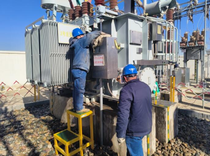 “報告班長,今日巡視發(fā)現35千伏永泰變2號主變有滲油現象。”1月11日上午10時20分,國網白銀供電公司景泰縣供電公司變電運檢班班長盧守武接到運行值班員巡檢設備異常的電話。永泰變是該公司春節(jié)保供電重點變電站,承擔著景泰縣寺灘地區(qū)所有居民用電及沙場開采、農業(yè)生產的供電任務。隨著春節(jié)臨近,若變壓器長時間滲油,油位低可能導致變壓器內部繞組絕緣散熱不夠,引起主變油位低告警,嚴重時可能會影響電網正常運行。放下電話后,為了在最短時間處理設備缺陷保證電網安全運行,盧守武第一時間組織檢修人員趕赴現場,查看滲油情況。