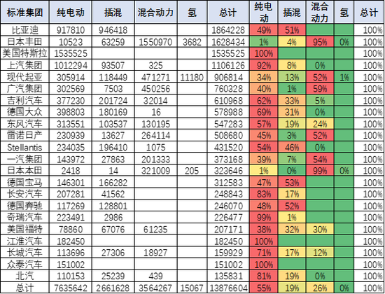 世界各廠家新能源差異明顯,豐田的混合動力超強(qiáng),而特斯拉只有純電動,且占據(jù)絕對主力地位。