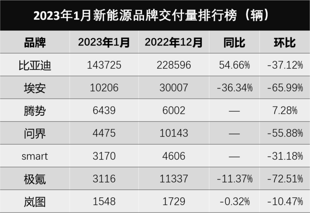 2023年的第一個月份,各家新能源車企也是準(zhǔn)時公布了銷量成績,說實(shí)話,基本都不怎么好看,受春節(jié)假期的影響,大部分車型都出現(xiàn)了“腰斬”的現(xiàn)象。