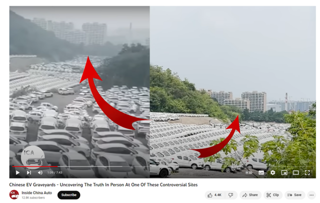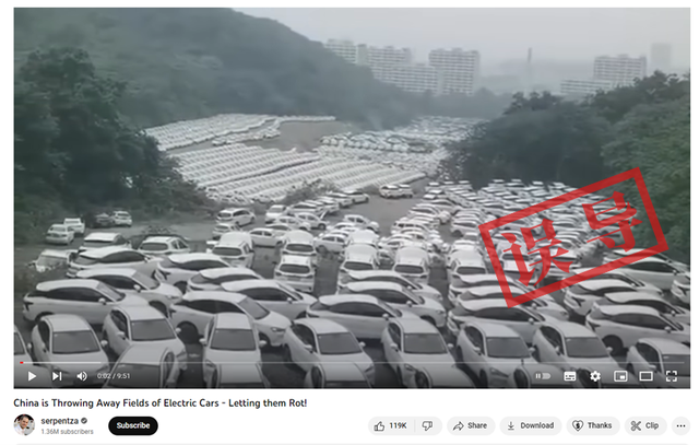 近段時(shí)間,推特、Youtube等社交平臺上廣泛流傳說法稱,“中國對電動汽車投資過度”“中國正在丟棄大量汽車,任其腐爛”、“浪費(fèi)”。有關(guān)說法通常配有圖片或視頻,顯示在雜草叢中停放著上百輛汽車。