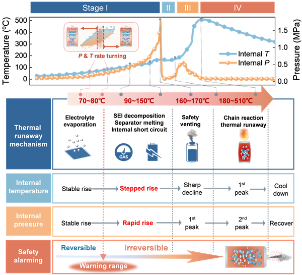 團隊首次發(fā)現(xiàn)了觸發(fā)電池?zé)崾Э劓準椒磻?yīng)的特征拐點與共性規(guī)律,實現(xiàn)了對電池內(nèi)部微觀“不可逆反應(yīng)”的精準判別,為快速切斷電池?zé)崾Э劓準椒磻?yīng)、保障電池在安全區(qū)間運行提供了重要手段。