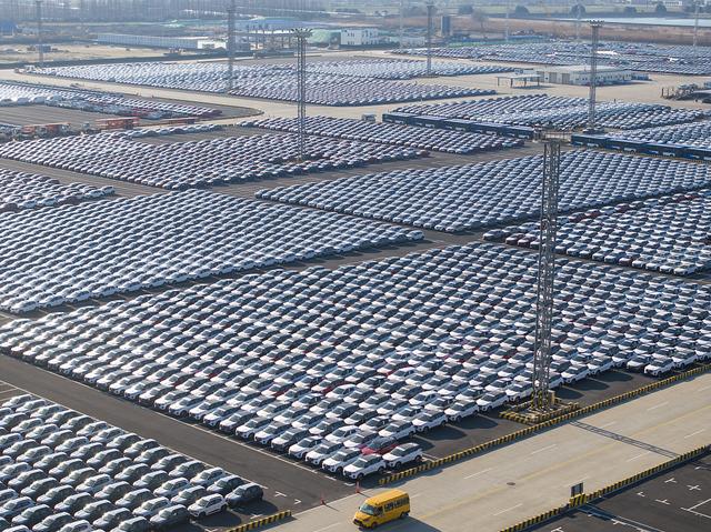 2024年1月24日,江蘇太倉港,新能源汽車等待出口。