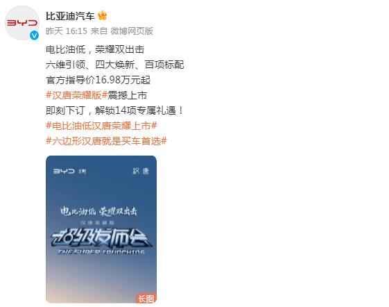 近期,比亞迪陸續(xù)發(fā)布多款“榮耀版”車型,包括起售價(jià)7.98萬元的秦PLUS榮耀版和驅(qū)逐艦05榮耀版,以及起售價(jià)9.98萬元的海豚榮耀版。對(duì)此,有網(wǎng)友評(píng)價(jià)稱,“估計(jì)現(xiàn)在其他所有廠家看到‘榮耀’兩個(gè)字腦袋就大”。