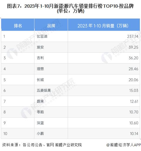 從銷量方面來看,2023年1至10月,我國新能源汽車銷量第一名的品牌為比亞迪,以237.14萬輛遙遙領先全行業(yè)。第二名為廣汽埃安,銷量為39.25萬輛;第三名為吉利汽車,銷量為36.20萬輛。造車新勢力三大車企中,理想排名第四,銷量為28.46萬萬輛,小鵬排名第十,銷量為10.14萬輛,蔚來排名七,銷量為12.61萬輛??傮w來看,2023年1至10月,傳統(tǒng)車企新能源汽車銷量總體好于造車新勢力。