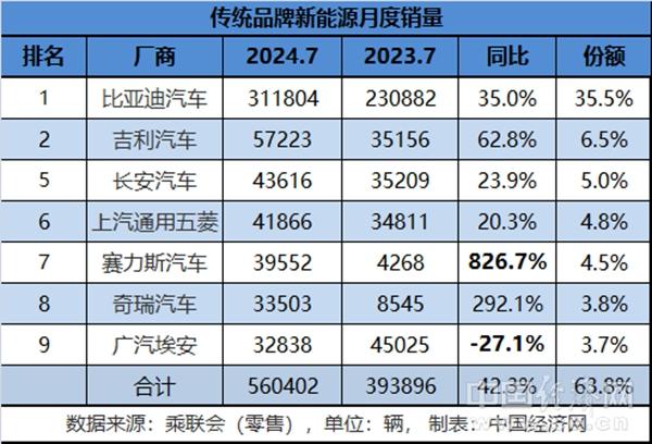 雖然入榜的傳統(tǒng)車企數(shù)量減少了,但7家企業(yè)的合計銷量卻比之上月提升了9000輛,至560402輛。