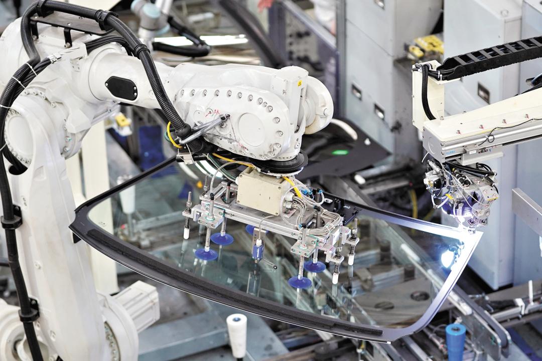 前后擋風(fēng)玻璃安裝站是一個(gè)多機(jī)器人融合的工位。