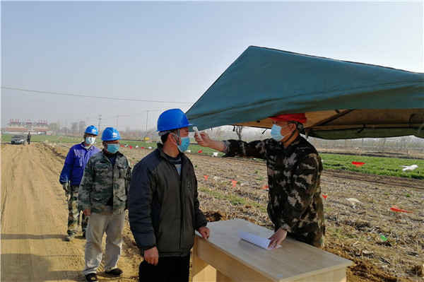 “您好,我是線路工程施工現(xiàn)場(chǎng)的疫情防控員,施工區(qū)域封閉式管理,進(jìn)場(chǎng)人員請(qǐng)主動(dòng)配合測(cè)量體溫”。