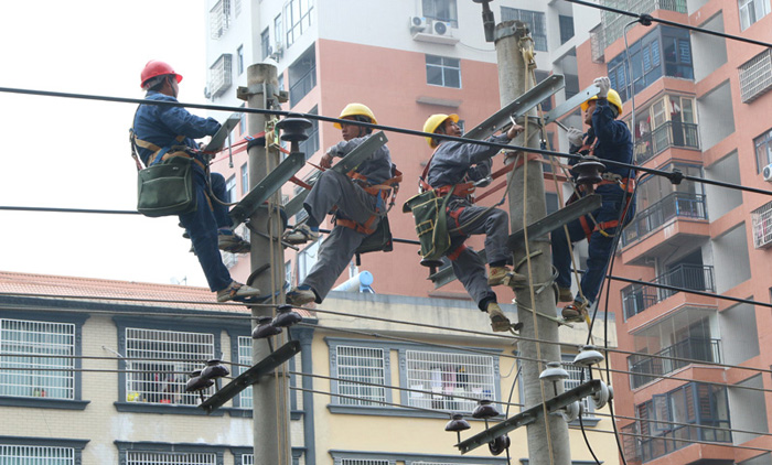 (圖為電力工人施工現(xiàn)場)