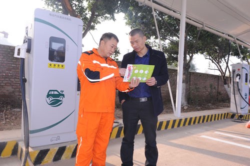向客戶介紹充電樁使用事項(xiàng)