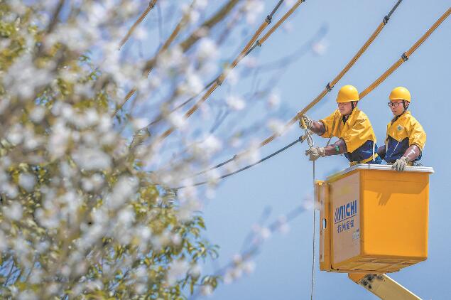 供電員工通過帶電作業(yè)方式改造升級配電網(wǎng)。 黃輝 攝