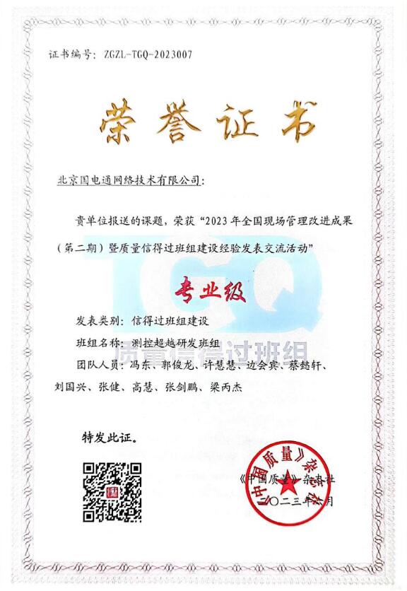 中國電力網(wǎng)訊(通訊員張俊偉)7月1日獲悉,國網(wǎng)信通產(chǎn)業(yè)集團國電通“測控超越研發(fā)班組”在2023年全國現(xiàn)場管理改進成果(第二期)暨質(zhì)量信得過班組建設(shè)經(jīng)驗發(fā)表交流活動中獲得信得過班組建設(shè)二等獎。