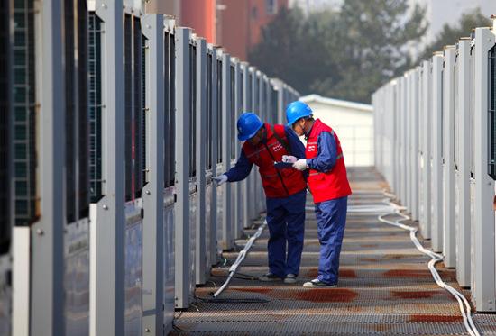 國網(wǎng)趙縣供電公司工作人員對李春大道空氣能供熱站主設備進行巡視檢查。侯西果攝