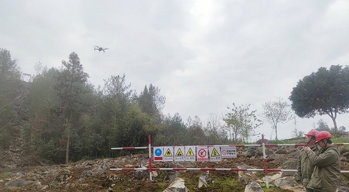 中國電力網(wǎng)訊 12月8日,在湖北省建始縣花坪鎮(zhèn)三岔槽村,湖北送變電工程有限公司恩施東-朝陽500千伏線路工程(恩施段)項目工人們翻山越嶺奔赴(T53號)基礎(chǔ)施工場,他們?nèi)讨坦呛L(fēng),運(yùn)用無人機(jī)對電網(wǎng)施工點位開展安全巡查,助力工程建設(shè)平穩(wěn)推進(jìn)。(郭秀春、郭暉)