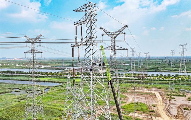 8月23日,黃驊市220千伏驊南線電力遷改工程現(xiàn)場,中鐵二十局電氣化公司電力工人正在加緊施工。