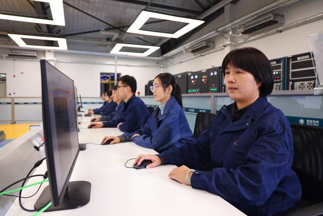 在國網(wǎng)北京市電力公司新型電力系統(tǒng)實驗基地里,國內(nèi)首條充電設(shè)施自動化檢測流水線正在有序運轉(zhuǎn)。技術(shù)人員坐在操作臺前,點擊鼠標操控電腦系統(tǒng),流水線上的巨型機械臂就開始自動運行,對測試區(qū)域里的電動汽車充電樁進行自動檢測。