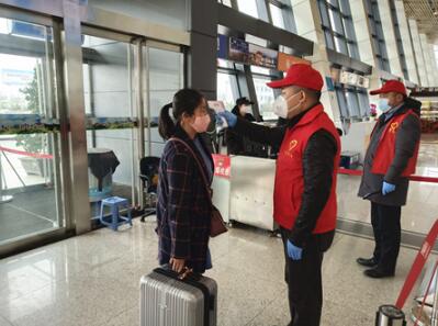 上午9時,20余名志愿服務(wù)隊員頭戴“小紅帽”、身穿“紅馬甲”,在城固縣柳林機(jī)場主動擔(dān)當(dāng)路口值守、旅客體溫測量、防控知識宣傳、疫情排查等工作。