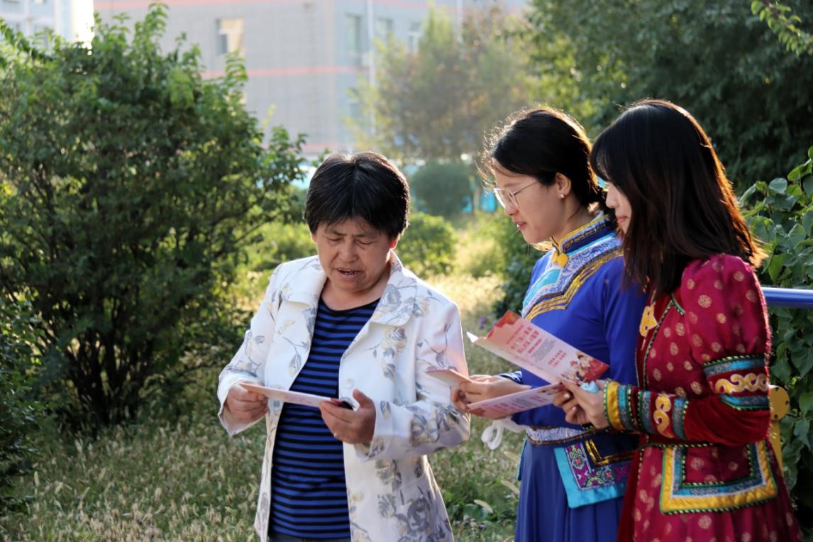 活動中,黨員同志們集中開展黨的民族理論政策宣傳,生動形象闡述民族團結、“三個離不開”、“四個不動搖”等民族政策,進一步增強社區(qū)居民對中華民族這一共有身份的認同感、歸屬感和責任感,拉近各民族情感,凝聚民族團結進步正能量。生動有趣的活動現(xiàn)場吸引了社區(qū)里眾多群眾的廣泛參與,身著蒙古族服飾的宣講員在夕陽的映射下顯得格外美麗。