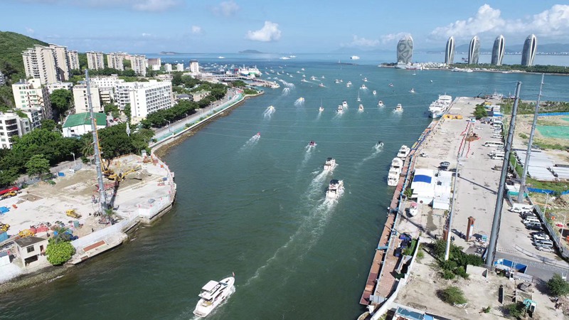 海南電網(wǎng)輸電運(yùn)檢分公司啟動(dòng)首個(gè)跨海電力遷改工程——三亞110千伏河口通道輸電線路電力遷改工程。黃麟德攝