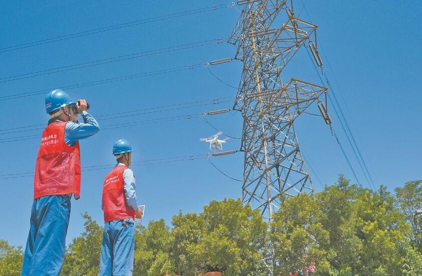 太原供電公司黨員骨干與青年員工共同巡檢重要輸電線路。