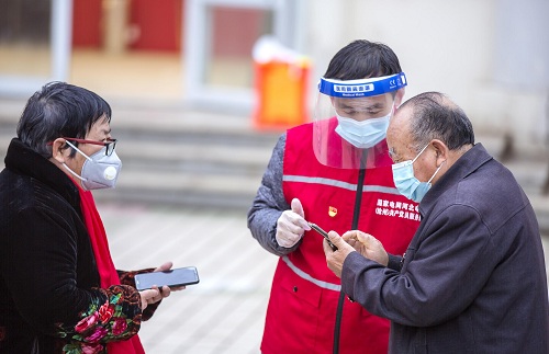 國網(wǎng)河北電力員工服務(wù)社區(qū)開展核酸檢測。