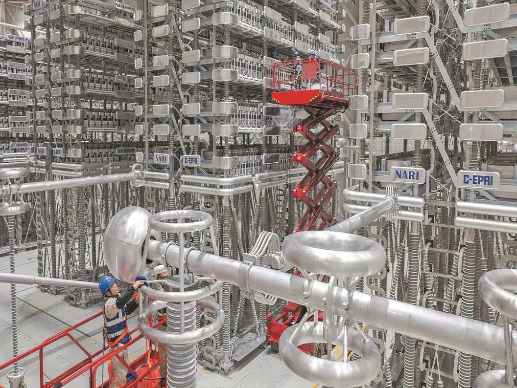 準(zhǔn)東—皖南±1100千伏特高壓直流輸電工程古泉換流站。 國網(wǎng)特高壓公司供圖
