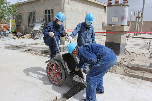 中國電力網(wǎng)訊 “快拉一車混凝土過來,這里還需要一車,大家都把混凝土鏟平了”,4月22日,新疆生產(chǎn)建設(shè)兵團(tuán)第一師電力有限責(zé)任公司輸變電工區(qū)組織職工自己動手美化家園,員工們都拿著鐵鍬、刮刀等工具在院內(nèi)修補(bǔ)地坪,讓家園更美、更靚。