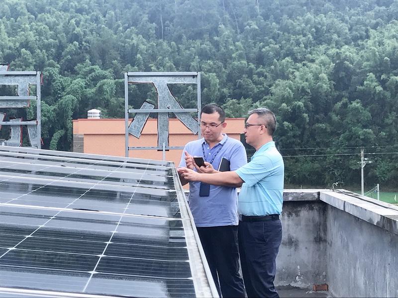 除了建設(shè)大棚蔬菜基地,高鋒還一直在琢磨,如何結(jié)合電網(wǎng)企業(yè)的專(zhuān)業(yè)優(yōu)勢(shì)促進(jìn)打贏脫貧攻堅(jiān)戰(zhàn)。經(jīng)過(guò)調(diào)研,高鋒帶領(lǐng)駐村工作隊(duì)積極探索適合林洞村發(fā)展的扶貧項(xiàng)目,多次與南方電網(wǎng)能源公司溝通,通過(guò)實(shí)地調(diào)研和可行性分析,結(jié)合林洞村日照較長(zhǎng)、光資源豐富的特點(diǎn),最終決定在林洞村開(kāi)展光伏扶貧項(xiàng)目。2017年建成了裝機(jī)容量30kW的一期光伏項(xiàng)目,2018年9月裝機(jī)容量70.5KW的光伏發(fā)電二期項(xiàng)目也竣工并網(wǎng)發(fā)電,至此,在駐村工作隊(duì)的協(xié)調(diào)下,林洞村共建設(shè)了光伏電站100kW。